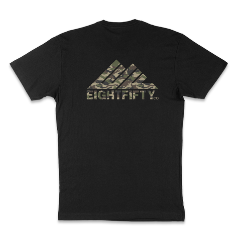 On the front, we have our EightFifty Co. logo printed on the left chest with a 4-color camo pattern.