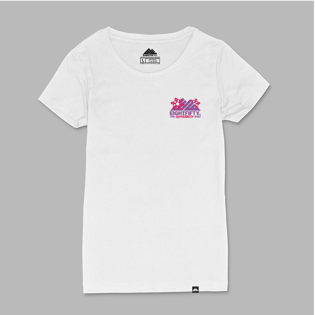 - Front Design: EightFifty Co. collab logo in purple, snowflakes in pink, “The Sierra Winter Way,” Sierra’s name in pink