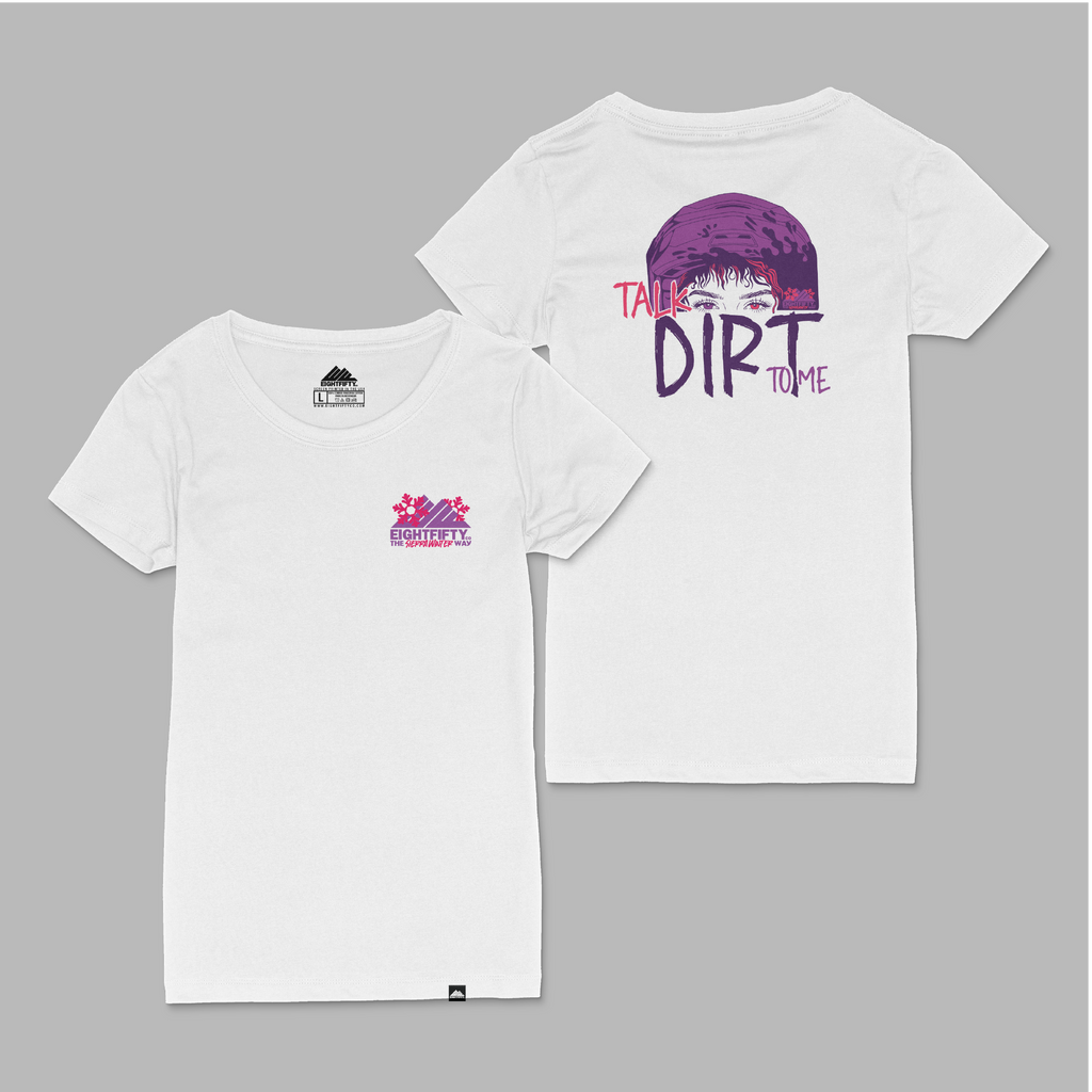 Ink(s): Pink, purple, dark purple - The Talk Dirt Women’s Tee showcases the perfect mix of Sierra’s creativity and EightFifty Co.’s craftsmanship, making it a standout piece from the 2025 collab lineup.